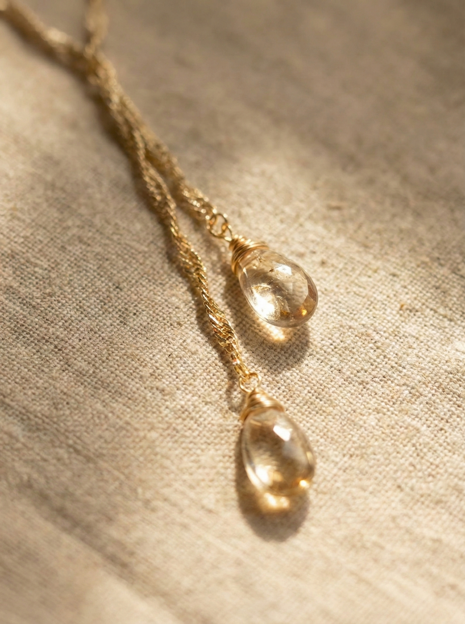 Embrace effortless elegance with the Dewdrop Lariat Necklace, a delicate gold-twist chain ending in two crystal-clear drops that capture the light like morning dew. Its minimal silhouette and graceful fall make it the perfect layering piece — soft, fluid, and endlessly versatile.